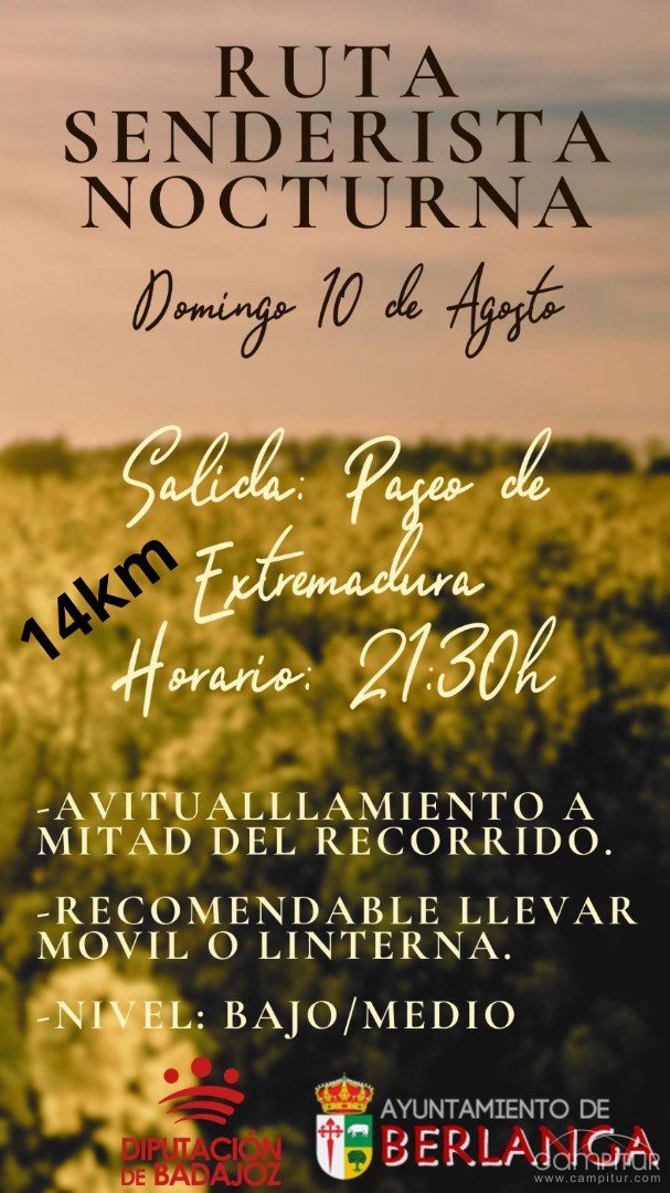 El próximo domingo 10 de agosto, Berlanga se convertirá en escenario de una experiencia única para los amantes del senderismo: una Ruta Senderista Nocturna de 14 kilómetros, organizada por el Ayuntamiento de Berlanga con la colaboración de la Diputación de Badajoz.